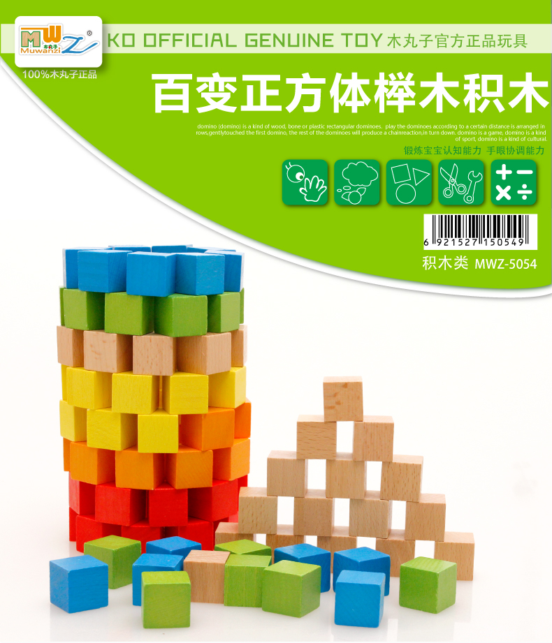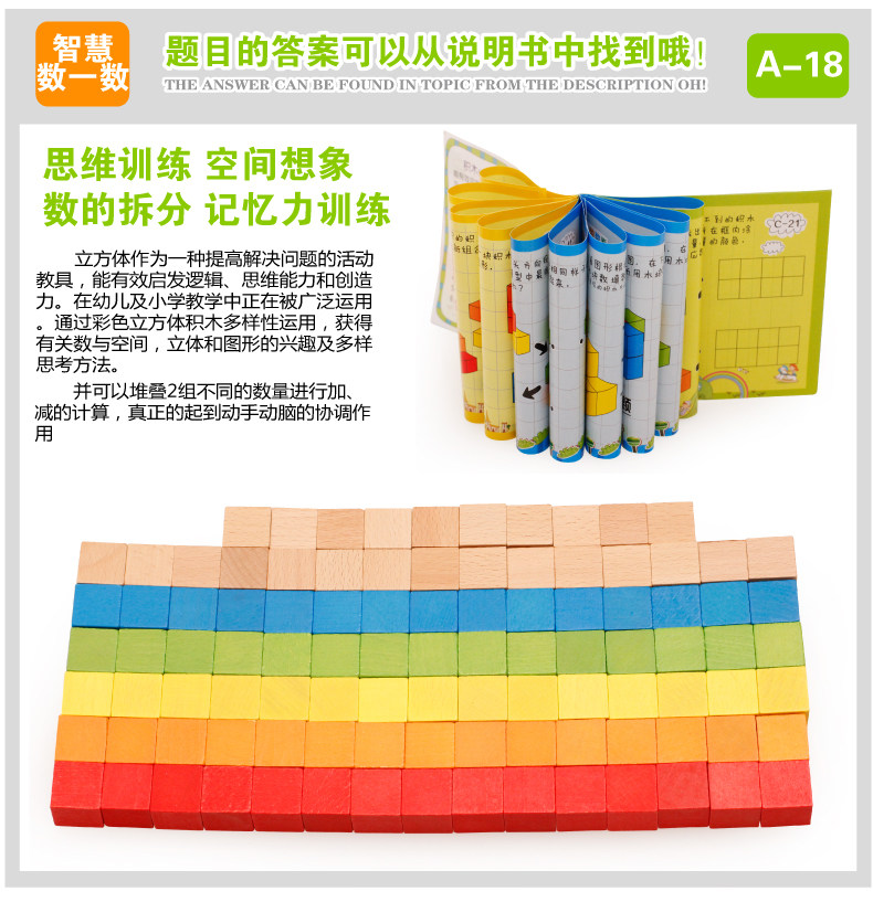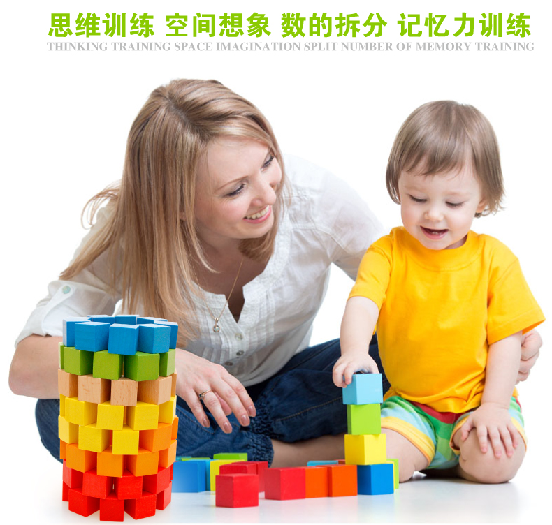 100粒正方体方块积木制立体几何拼图教具儿童早教益智玩具