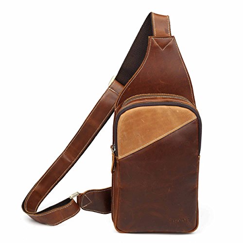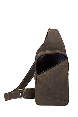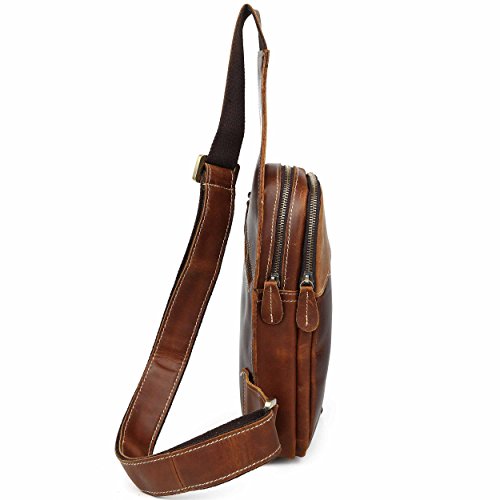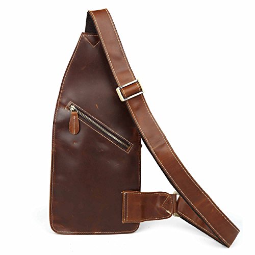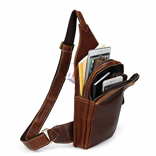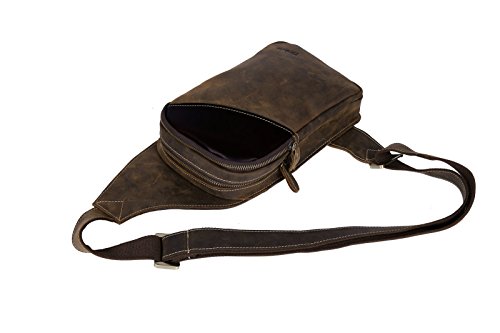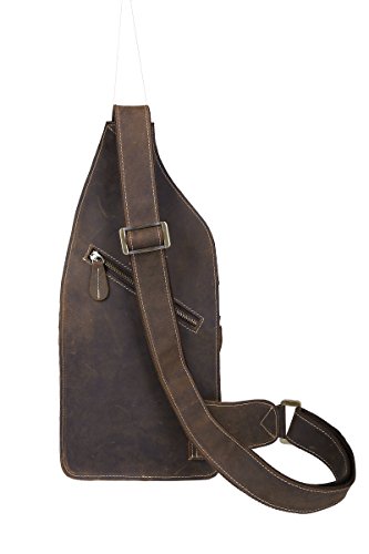 -. Title : Men's Brown Leather Backpack Hiking Rucksack Sport Sling Bag