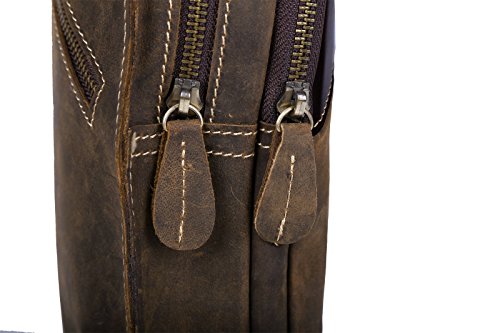 -. Feature : Made of cowhide leather,casual style / Side zipper closure is convenient to quick access items / Durable leather shoulder strap with adjustment antique finish brass metal buckles / Including main pocket,back zipper pocket, interior zipper pocket,mobile pohne holder