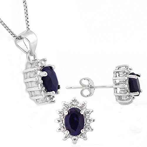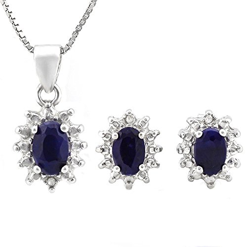 -. Title : 2.00 CTW Genuine Sapphire & Diamond Sterling Silver Earring & Pendant Set w/18" Chain