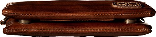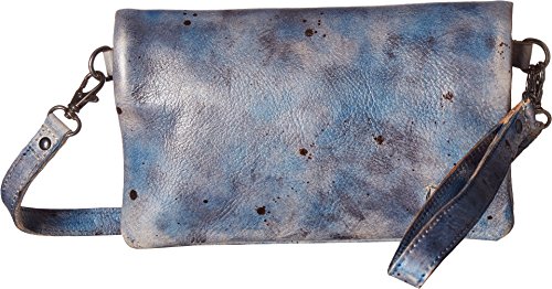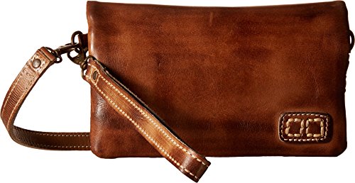 Removable crossbody and wrist straps. Fold-over style with magnetic snap closure . Interior zip pocket and two slip pockets.