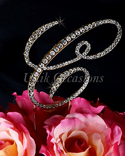 Unik Occasions Victorian Crystal Rhinestone Wedding Cake Topper, Small, Letter C, Gold