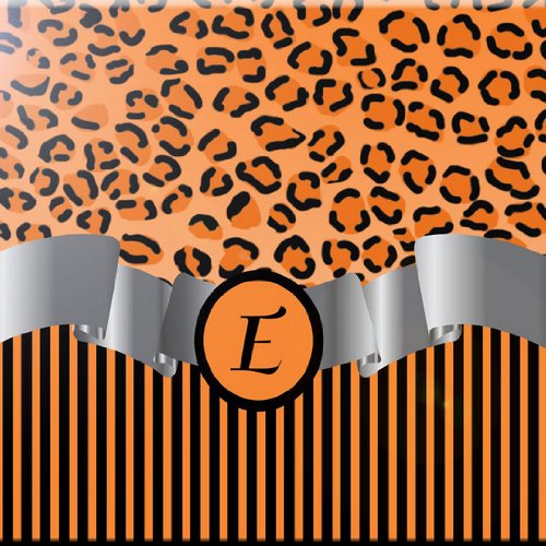 Rikki Knight RK-12intilec-2295 12" X 12" Letter "E" Orange Leopard Print Stripes Monogram Design Ceramic Art Tile