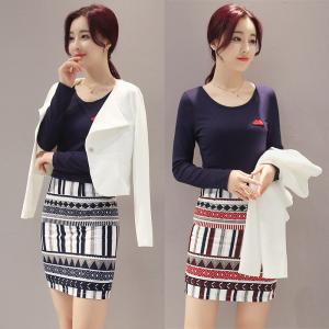 スカートのオリエンタル風幾何学デザインと同系の落ち着いたネイビーカラーシャツがマッチしたセット☆