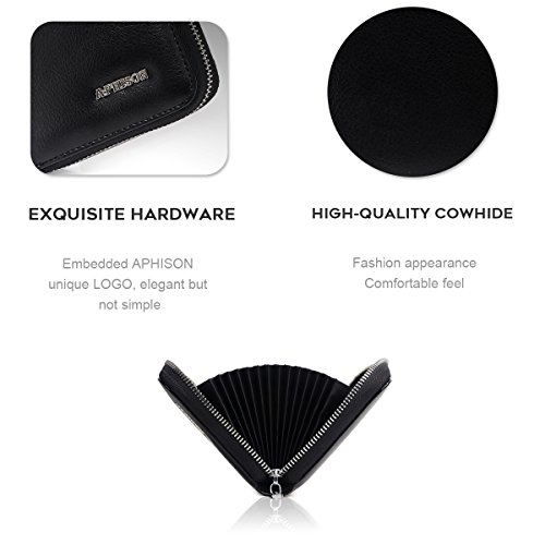 - ❤ MADE FROM APHISON GENUINE LEATHER -This leather credit card wallet made of high quality genuine leather with fabric lining and soft hardware