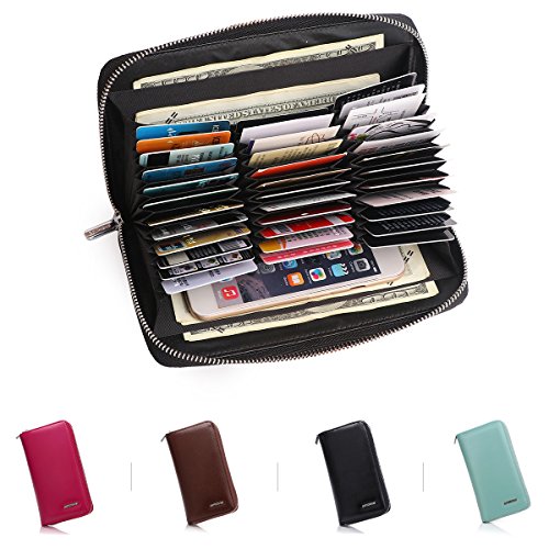 - ❤ OUTSIDE ID WINDOW AND CARD SLOT - Lightweight with huge storage capacity, totally 36 RFID blocking card slots, you can put 1-2 cards into each card slot, also you can put notes, receipts or some folded cash into beside compartment . Great fit for business cards. Wallet Size: 7.87"x4.33"x1.18".