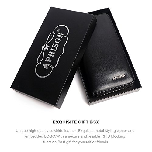 APHISON RFID Card Holder Leather Women Men Credit Card wallets Passport Cell phone Purse/Gift Box 66625