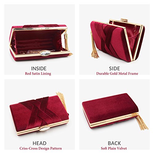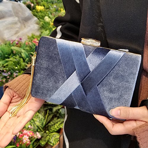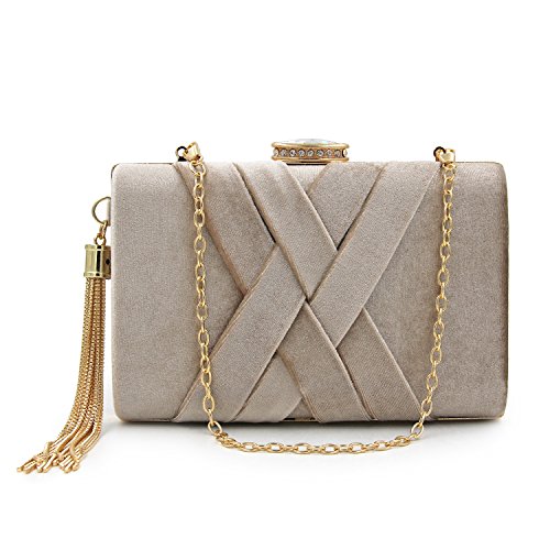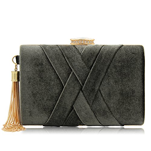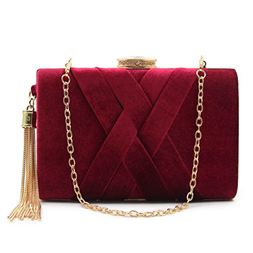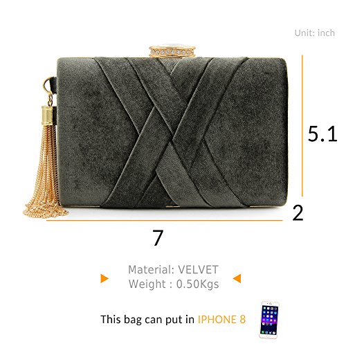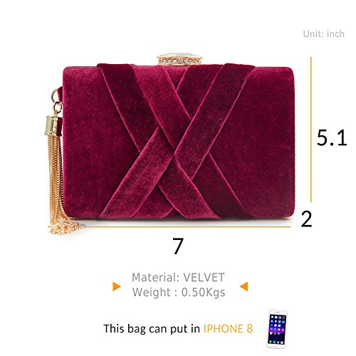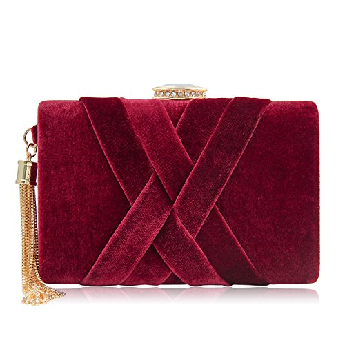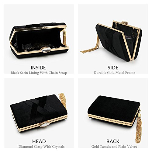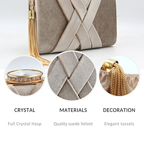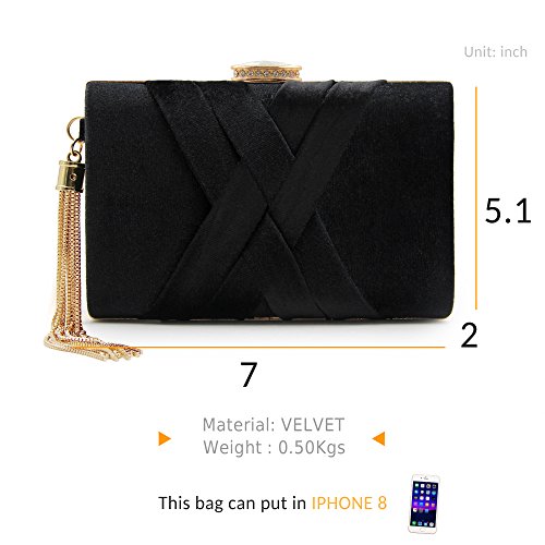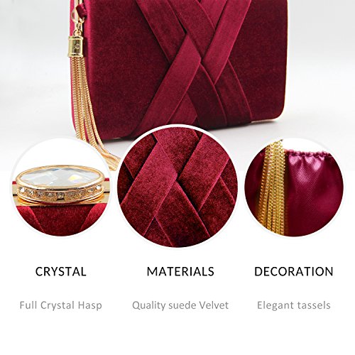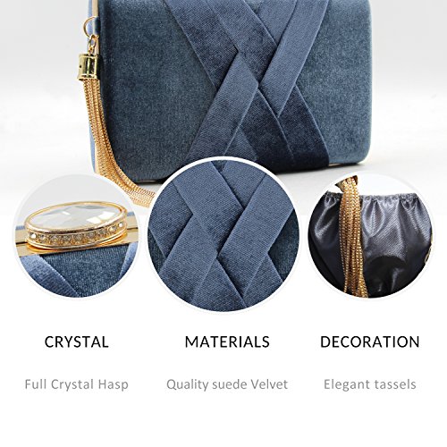 | Women Bridal Crystal Clutch Purse Fashion Velvet Party Evening Bag With Metal Tassel |
