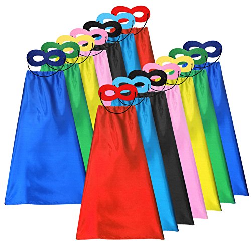 FULL SETS FOR ALL THE KIDS IN THE PARTY ★7pcs DIY superhero capes + 7pcs felt masks (totally 14pcs). Our Cape dress come in 7 vibrant colors: Red, Green, Blue, Pink, Light-blue, Black, Yellow; The masks come in matached colors