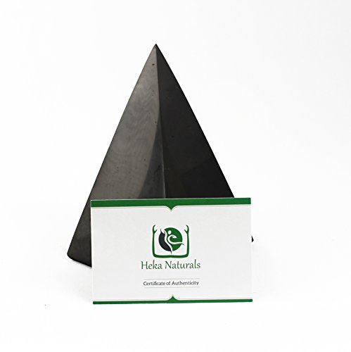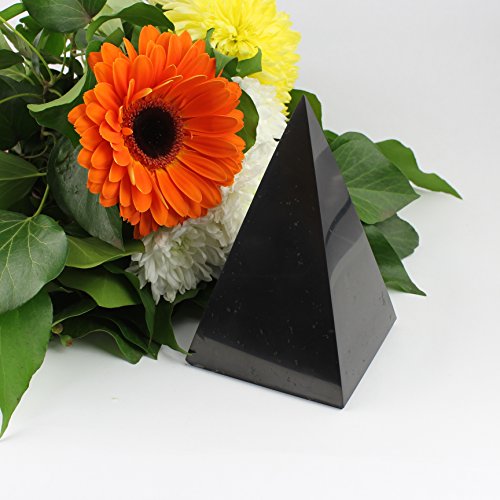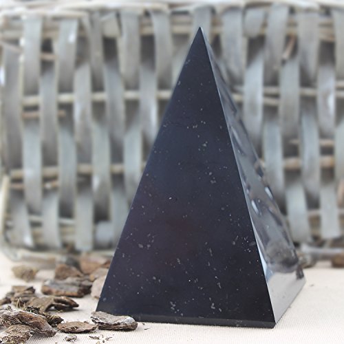 Shungite High Polished Pyramid 8 cm (3.15"): Guaranteed Authentic Highest Quality Russian Natural Healing Stone from Karelia - EMF Radiation Protection, Chakra Balancing, Decoration, Purification