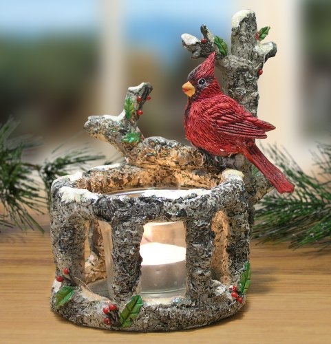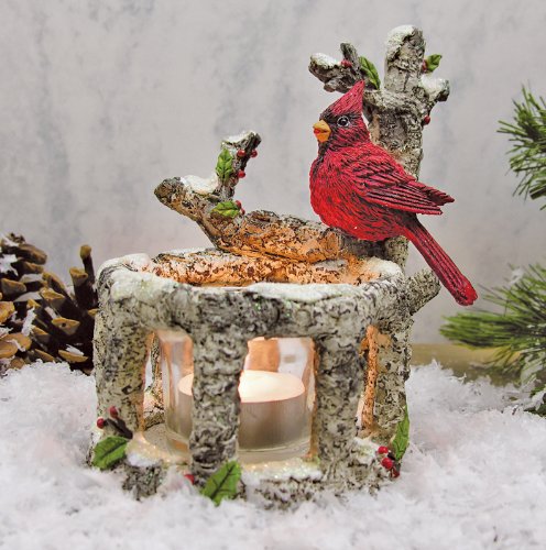 HOLIDAY CARDINALS. Beautiful set of woodsy cardinal candle holders. Each holder comes with a white flame free tea light candle. These winter cardinals are the perfect addition to your Christmas decorations.