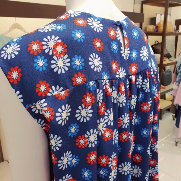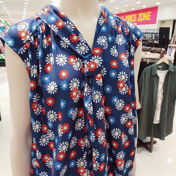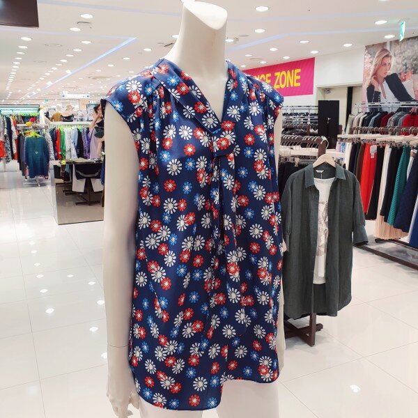 플라워패턴무늬의 시원한 블라우스입니다 넥라인으로포인트를 주실수있으며 A라인으로 체형커버도 가능하며 하늘한소재로 고급스러움을 더해줍니다
