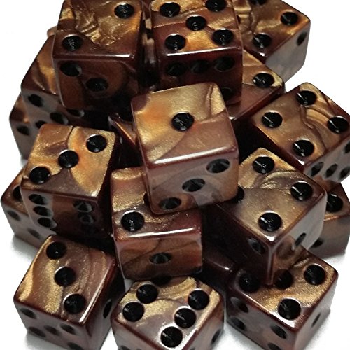 Product Description16mm (5/8") 6-sided Square Cornered Opaque Dice, Bronze Marbleized with Black Spots0