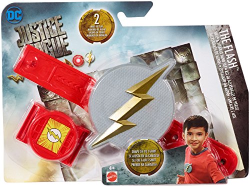 -. Binding : Toy -. Brand : Mattel -. EAN : 0887961509625 -. Feature : Iconic The Flash gear for role-play fun / Logo snaps on t-shirts / Wristband snaps onto logo to form a shield for more battle action / Full Collection also includes Batman, Superman and The Flash. Each character accessory pack sold separately / Great gift for DC Justice League fans! -. Label : MAOZ4 -. Manufacturer : MAOZ4 -. Model : FGM01 -. MPN : FGM01 -. PackageQuantity : 1 -. PartNumber : FGM01 -. ProductGroup : Toy -. ProductTypeName : TOYS_AND_GAMES -. Publisher : MAOZ4 -. Studio : MAOZ4 -. Title : DC Justice League The Flash Action SHEILD Set -. UPC : 887961509625 -. Warranty : 1 year warranty against manufacturer defects