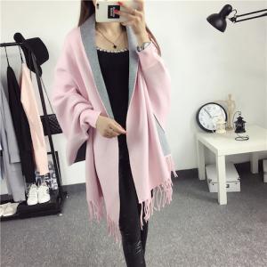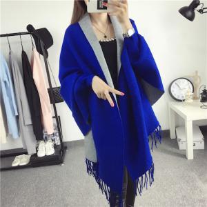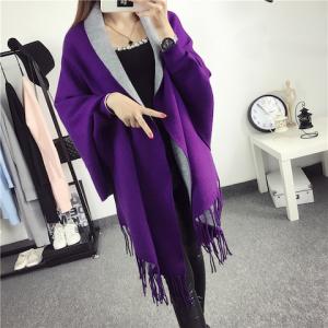 ケープ 羽織り ポンチョ フリンジ バイカラー ストール 秋冬 春 プチプラセール ニット セーター ショール
