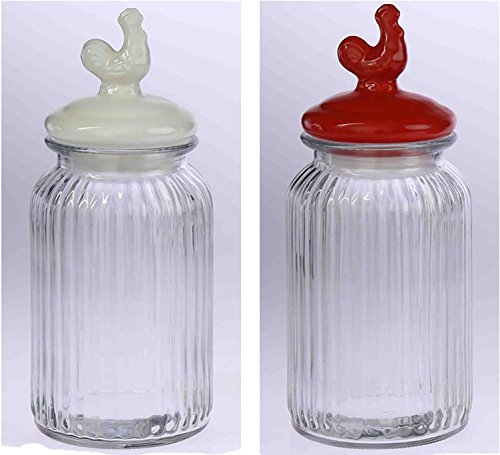 Glass & Ceramic Rooster Canister Jars - Set of 2 Assorted Colors