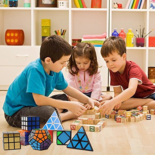 -. Binding : Toy -. Brand : Goldenwide -. EAN : 0751570523481 -. Feature : BUNDLE SET OF 6 - Within one purchase, you get 6 popular speed cube puzzle: 2x2x2, 3x3x3, 4x4x4, 5x5x5, megaminx speed cube and gold mirror cube puzzle. Try to accomplish different levels of the cube and enjoy the feeling / EXCELLENT STABILITY - Crafted with eco-friendly ABS material and hard wearing PVC stickers that will not peel off or fade easily. Super-durable and solid stickers will not peel off or fade easily, harmless to human and environment. All magic cubes come pre-lubricated and tensioned. Non-toxic, reliable, and lightweight and comfortable in hands. / HOURS OF FUN - Fast and smooth, amazing corner cutting and zero pops .Tension adjustable. It doesn't corner twist as often nor does it lock up. Good control of the cube. Exercises your memory and hands-on skills, It is a perfect educational toy. / ULTIMATE GIFT - No one falls out of love with the cubes. Perfect Christmas / Birthday Gift for kids. They are always awesome and will never go out of style. Suitable for beginner and professional player. / 100%SATISFACTION GUARANTEE - 100% Satisfaction with no questions asked. Simply contact our after sales service team to get your problem resolved. -. IsAdultProduct : 0 -. Label : Goldenwide -. Manufacturer : Goldenwide -. ProductGroup : Toy -. ProductTypeName : TOYS_AND_GAMES -. Publisher : Goldenwide -. Studio : Goldenwide -. Title : 6-Pack Popular Magic Cube Puzzle - Including 2x2x2 3x3x3 4x4x4 5x5x5 Speedcubing White Puzzle, Megaminx Puzzle Cube and Gold Black Mirror Cube -. UPC : 751570523481