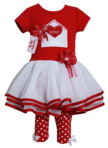 -. Feature : Your little girl will look like the Sweetheart she is! This adorable set from Bonnie Jean is perfect for Valentine's Day. Girls 2pc set features short sleeves red knit top, adorable envelope & small heart, multi-layered white mesh skirt w /red satin trims. A fun, cute and comfortable set for your little one to wear! / Toddler size available R21415