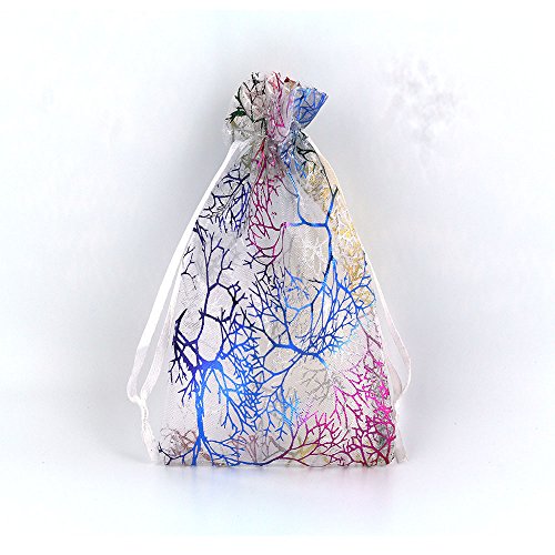 AOBZ Organza Bags, Gift Bags, 4 x 6 Inch 100 Packs Drawstring Wedding Party Favor Candy Bags Jewelry Pouches, Coralline Pattern (White)
