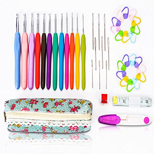 - Has everything you need-- 12 differents size Crochet Hooks, 9 pieces Large-eye Blunt Needles, 20 Stitch Markers, 1 Scissors, 1 Row Counter, 1 Tape Measue, 1 crochet hooks case