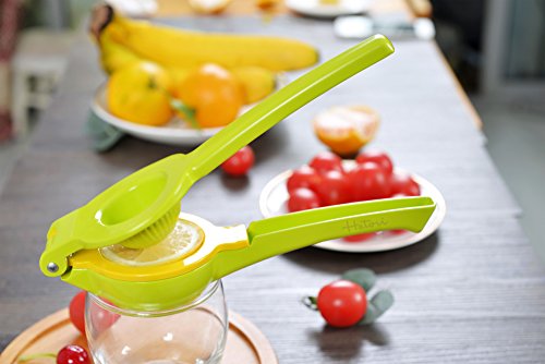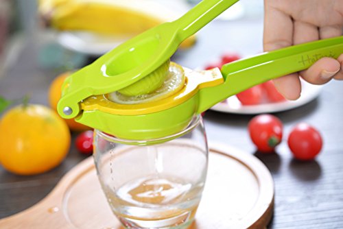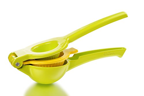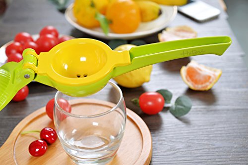 Studio : Haturi Publisher : Haturi Product Description Haturi Lemon Squeezer Benefits of using a quality Haturi Lemon Squeezer: Hygiene - No more worries of getting the juices all over your hands Economics - Get more juice from your fruits Efficiency - Juice your lemons and limes in half the time - just takes one simple squeeze! All Juice, no mess! - Haturi handheld metal lemon squeezer extracts ALL the juice and catches the pulp and seeds Beautiful color makes for a great stocking stuffer or small gift. When using, press firmly on both handles with equal pressure. This will avoid twisting or breaking the handles 0