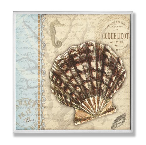 The Stupell Home Decor Collection Shell Brown Aqua Wall Plaque