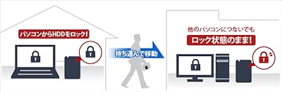パソコンでHDDをロックすると他のパソコンにつないでもロック状態を維持できる「おでかけロック」機能を搭載しました。万が一の紛失時も安心です。