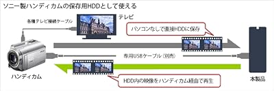 外付けHDDへの保存に対応するハンディカムと接続して、本製品にカメラで撮りためた映像をダイレクトに保存・再生することができます。