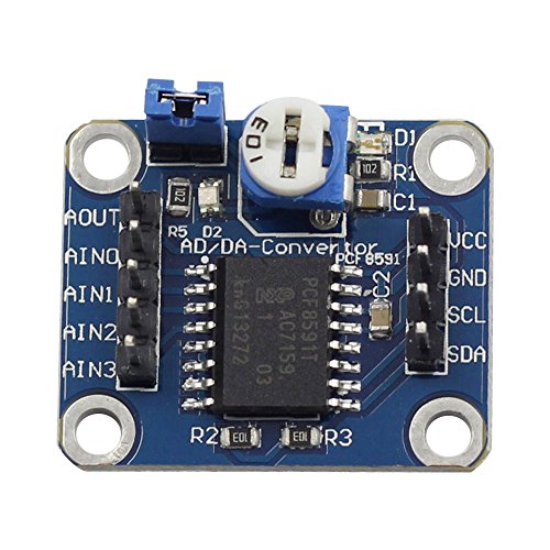 The PCF8591 is a single-chip, single-supply and low-power 8-bit CMOS data acquisition device with four analog inputs, one analog output and a serial I2C-bus interface. Three address pins A0, A1 and A2 are used for programming the hardware address, allowing the use of up to eight devices connected to the I2C-bus without additional hardware. Address, control and data to and from the device are transferred serially via the two-line bidirectional I2C-bus.