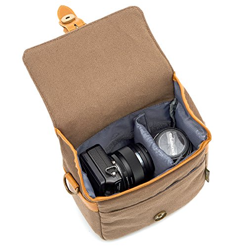-. Title : Evecase カメラバッグ 一眼レフ カメラケース 小型 ショルダーバッグ キャンバス フォームラバー製