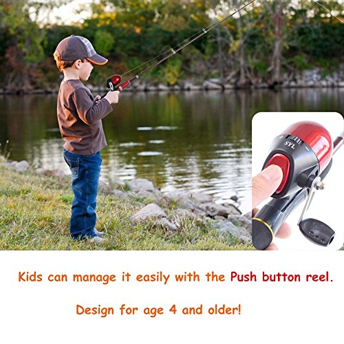 Comfortable and Easy for kids! A textured pistol style handle ensures a secure grip. The spincast reel offers easy push-button casting method to allow kids to feel cool and confident when the fun starts!