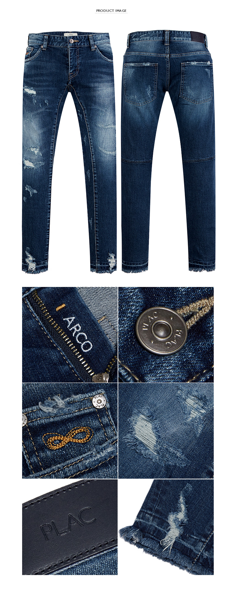 - 딥한 블루톤 인디고 컬러의 크롭 바이커핏 데님 - 일반 경슬랍 원단에 기본 캣브러쉬 작업 후 누빔 구제와 오픈성 구제를 섞어 유니크함 - 밑단을 말아박았다 풀어냄으로써 스트릿한 느낌이 강하게 나는 제품 - COTTON 98%, POLYURETHANE 2% - 13 OZ 1SIZE UP! | |