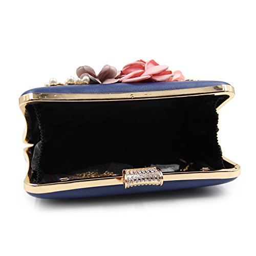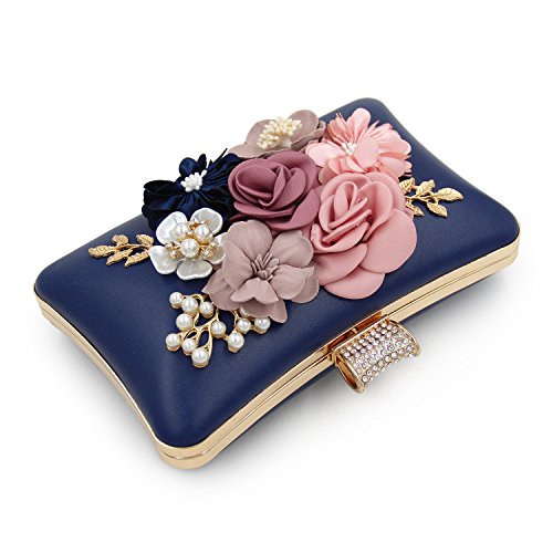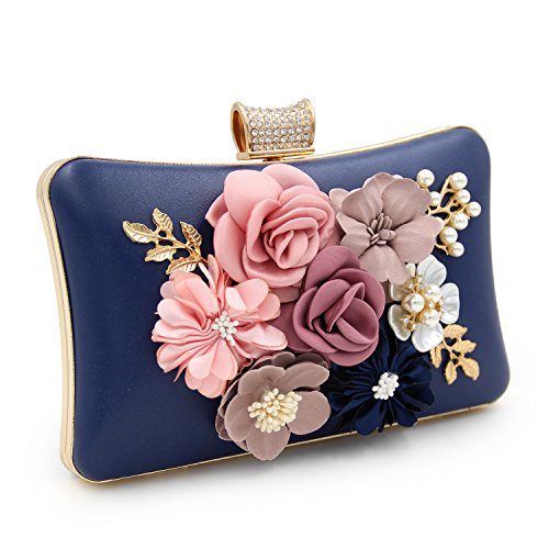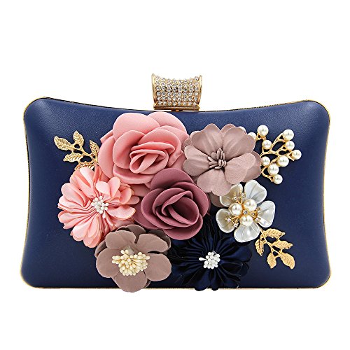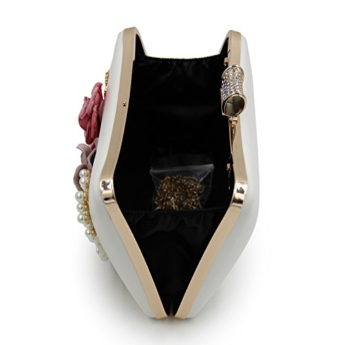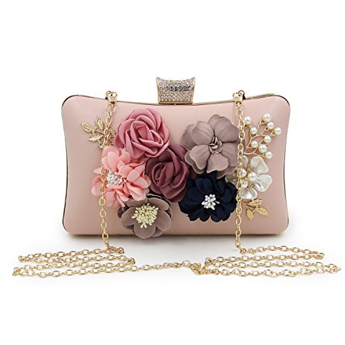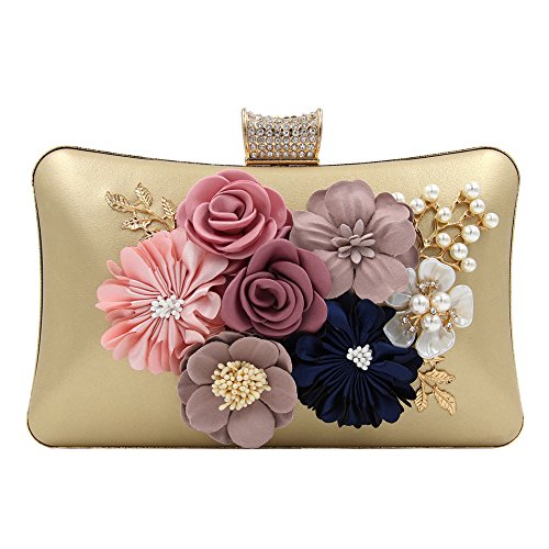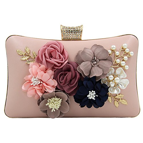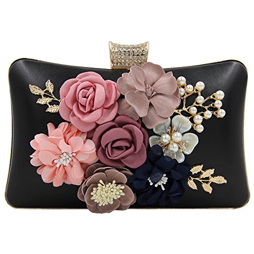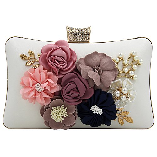 (missfiona)/Accessories/Handbags/DIRECT FROM USA/Missfiona Women's Satin Flower Pearl Stud PU Leather Evening Prom Clutch Bag Hardbox 2018