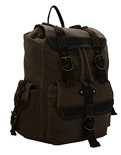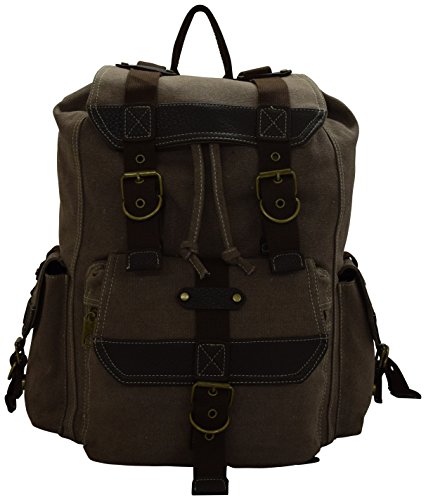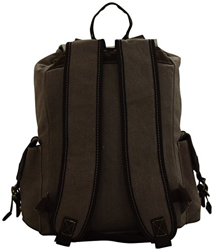 Washed Canvas Backpack with Flap and Two Side Pockets