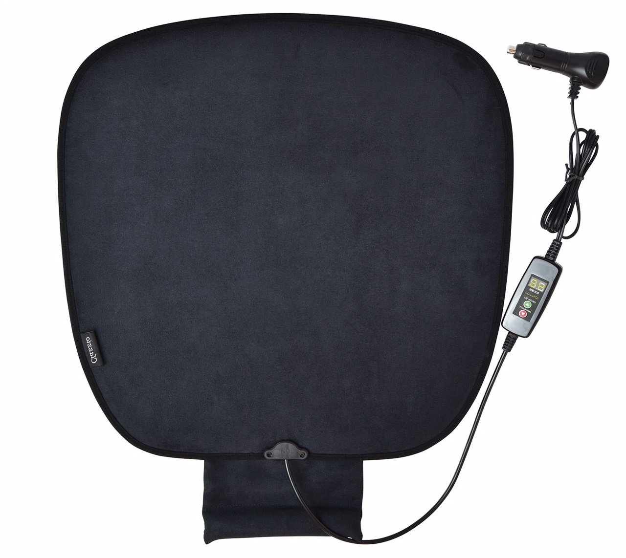 Heater cushion with built-in high performance heater panel is easy to install just by inserting into the cigar socket.