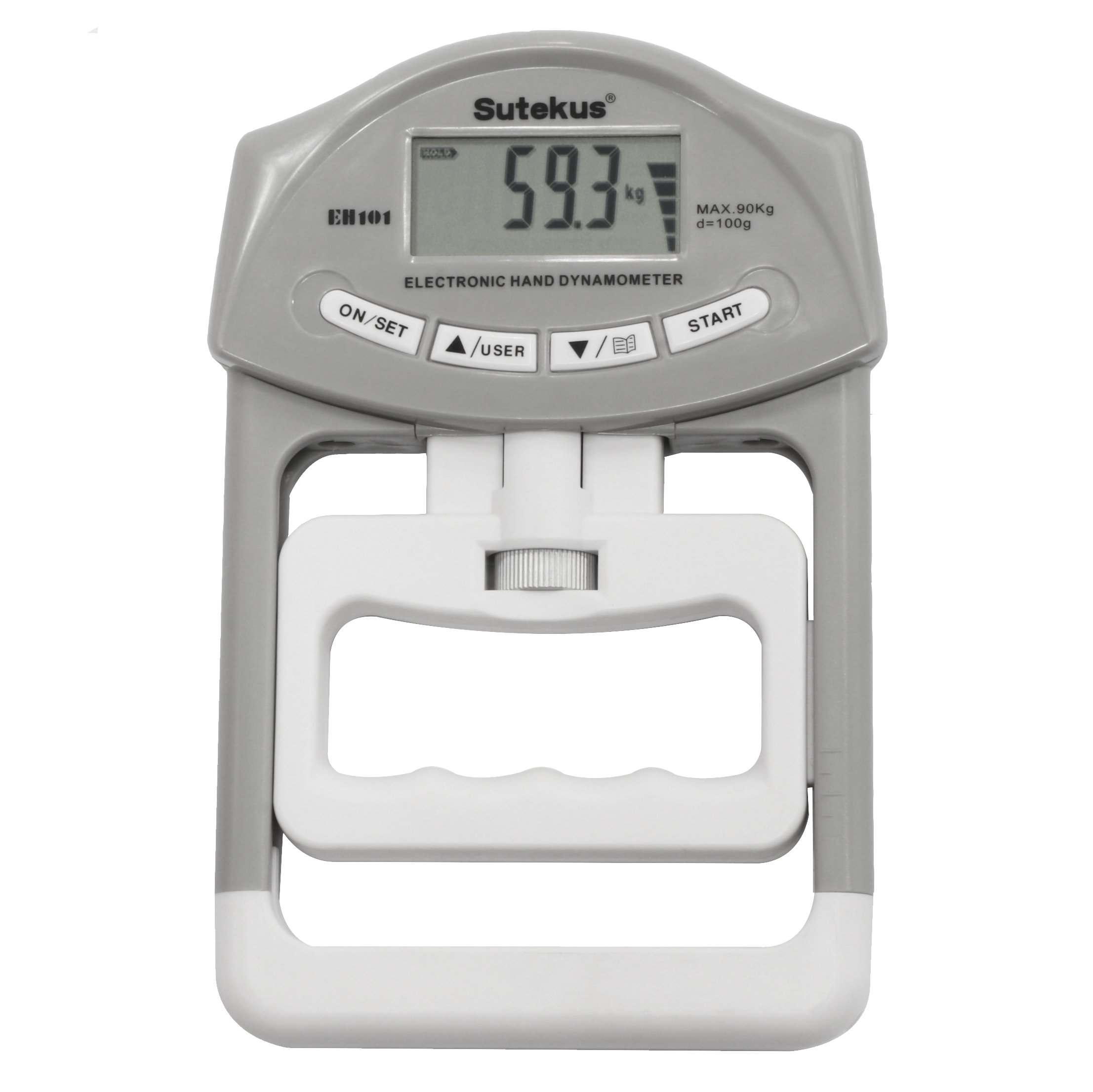 With this digital grip force meter, grip strength is measured in units of 100 g and displayed digitally.