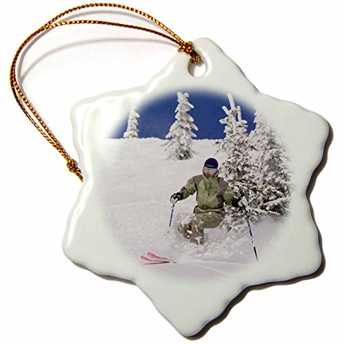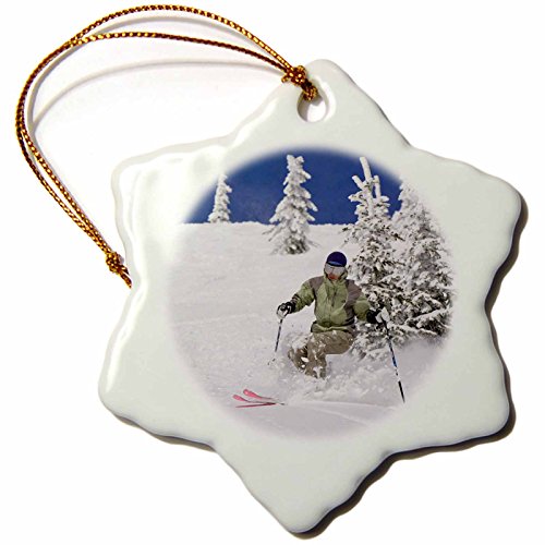 3dRose orn_91717_1 Telemark Skier, Whitefish Mountain Resort, Montana-US27 CHA1219-Chuck Haney-Snowflake Ornament, Porcelain, 3-Inch
