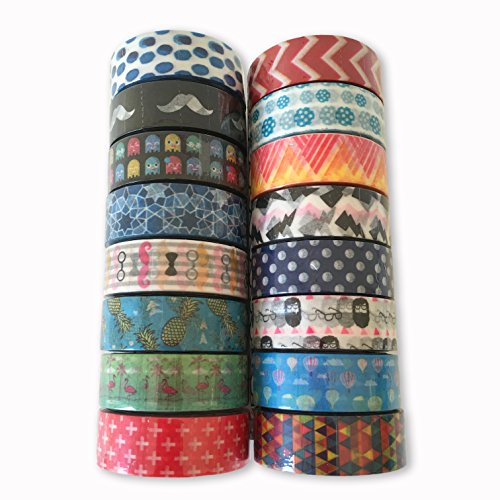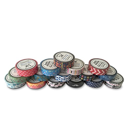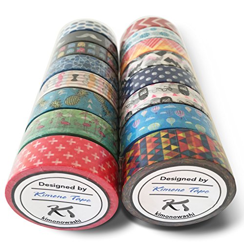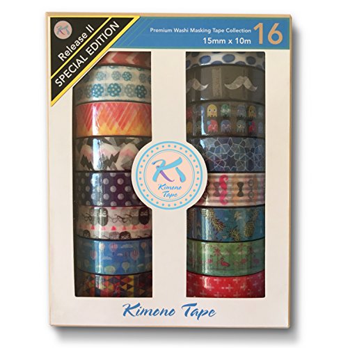 Premium Washi Masking Tape Collection (SET OF 16) by Kimono Tape - Vibrant Decorative Japanese Paper Tapes - Special Edition II