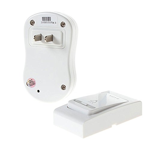 -. Feature : EASY: Simply plug receiver into the outlet,(US Plug 120v), battery for push button is included / WIRELESS: Wireless range up to 400 ft (120 m) operating range / 28 CHIMES: Different ringtones with adjustable volume; Built-in stereo speakers make the sound crisper and sweeter / DESIGN: Lightweight, dustproof design, comprehensive protection / WARRANTY: One-Year 100% Satisfaction Guaranty