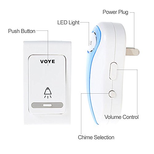 -. Title : VOYE Wireless Remote Door Bell Chime with 28 Ringtones [Built-in stereo speakers & adjustable volume]