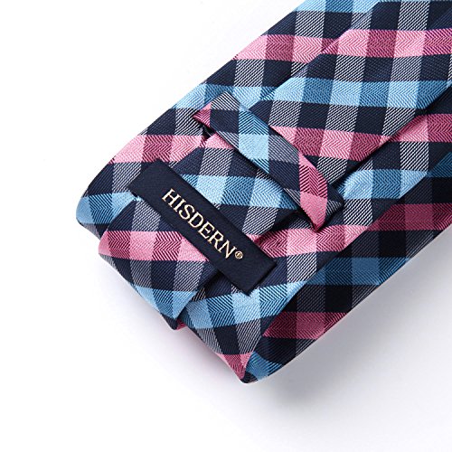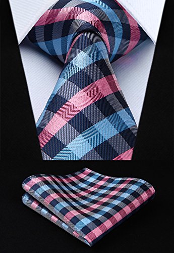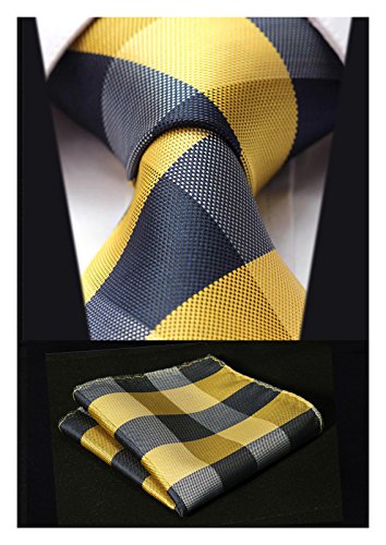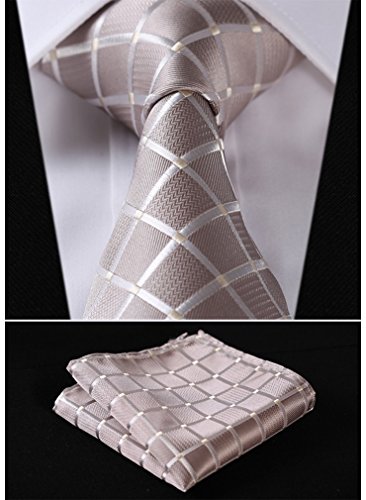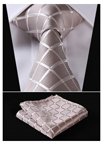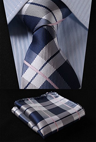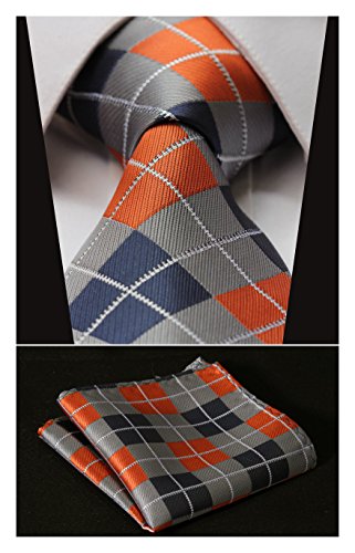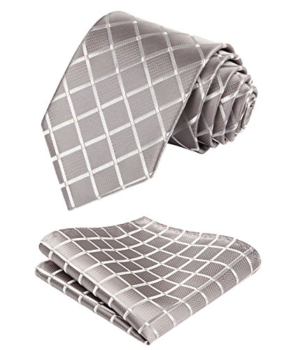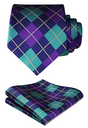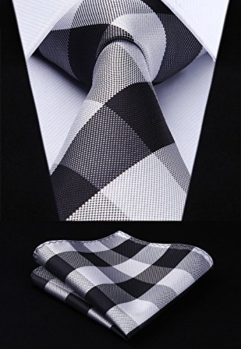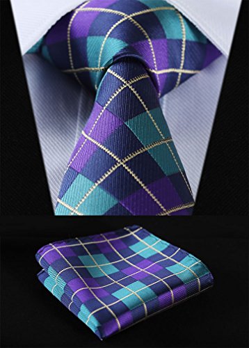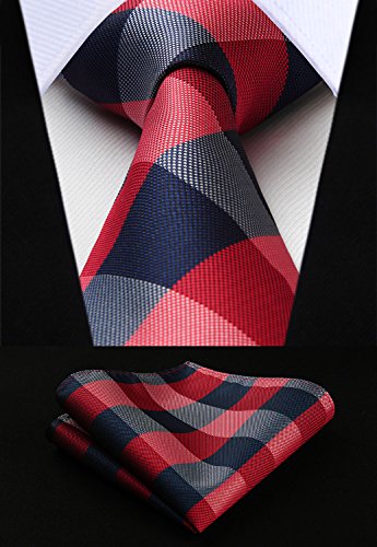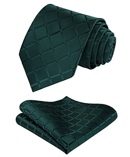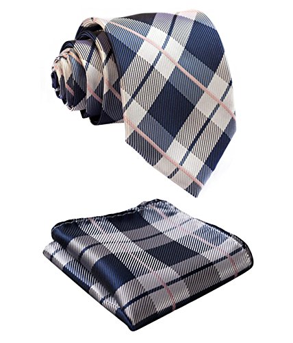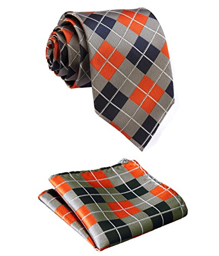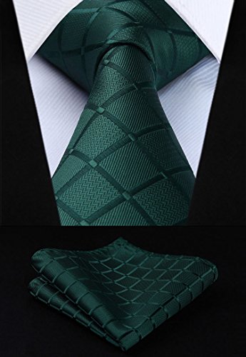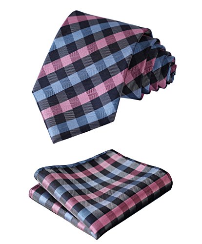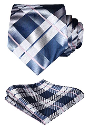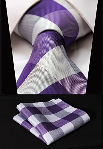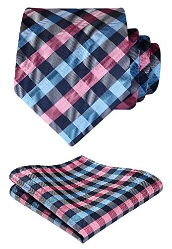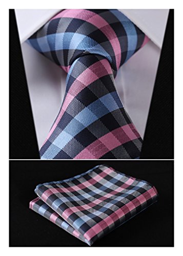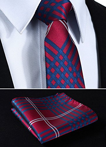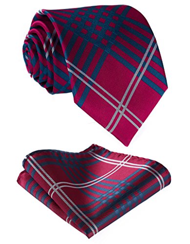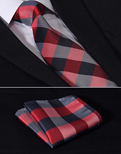 | HISDERN Plaid Tie Handkerchief Woven Classic Men's Necktie Pocket Square Set |