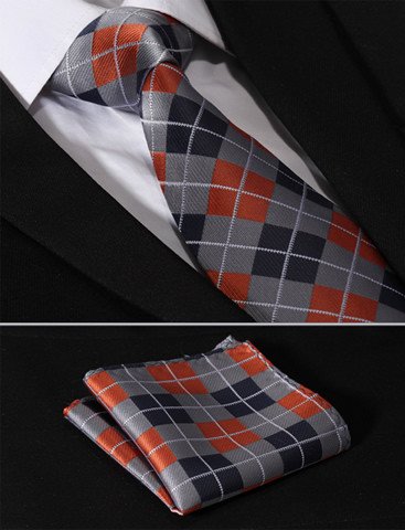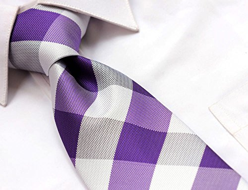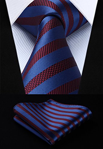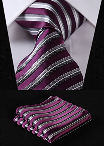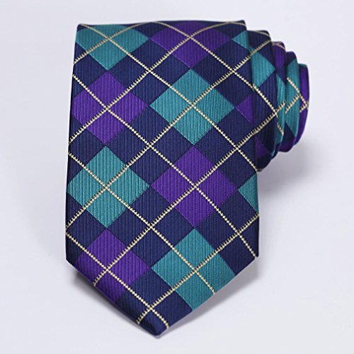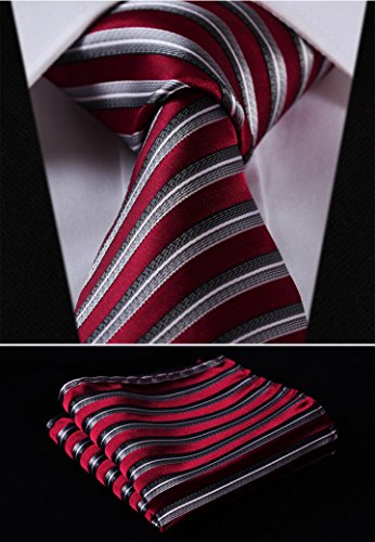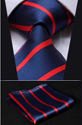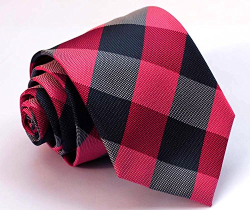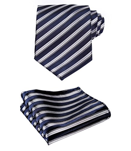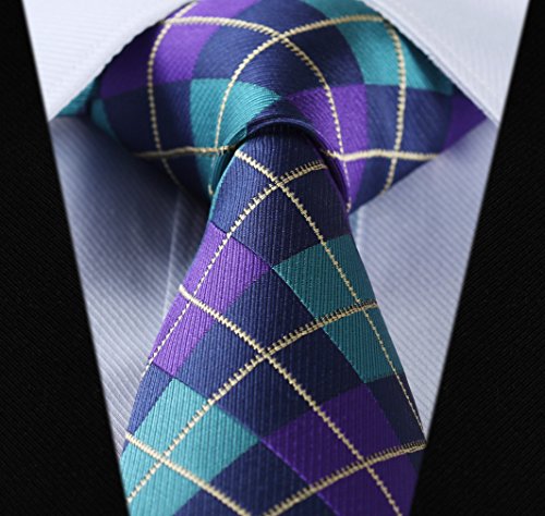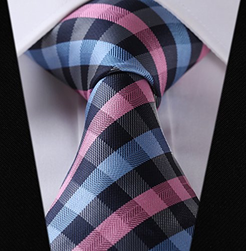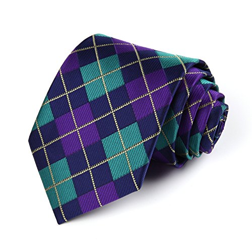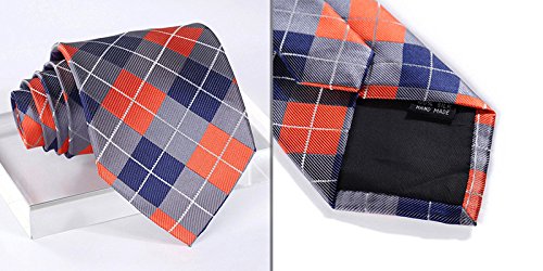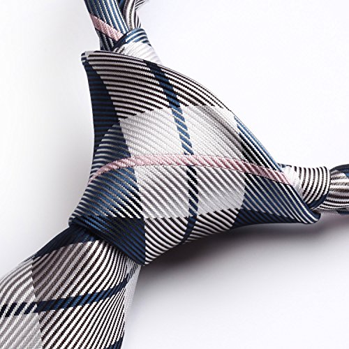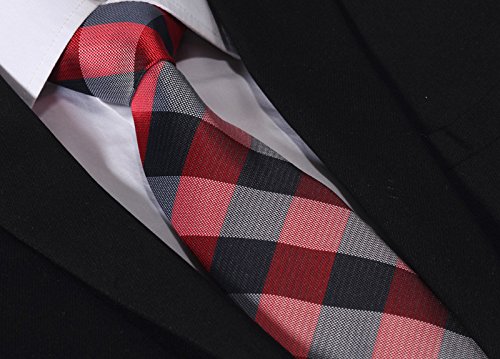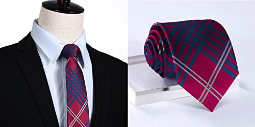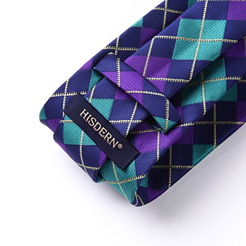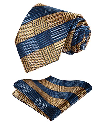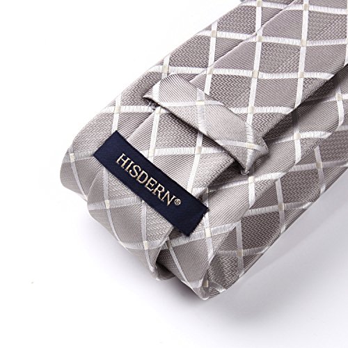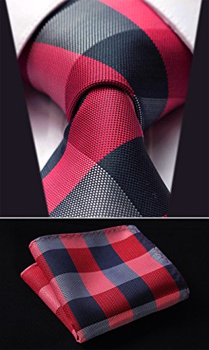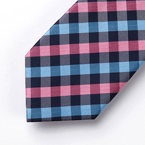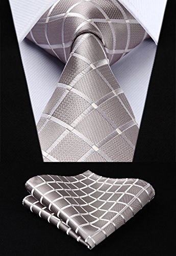 | HISDERN Plaid Tie Handkerchief Woven Classic Men's Necktie Pocket Square Set |
