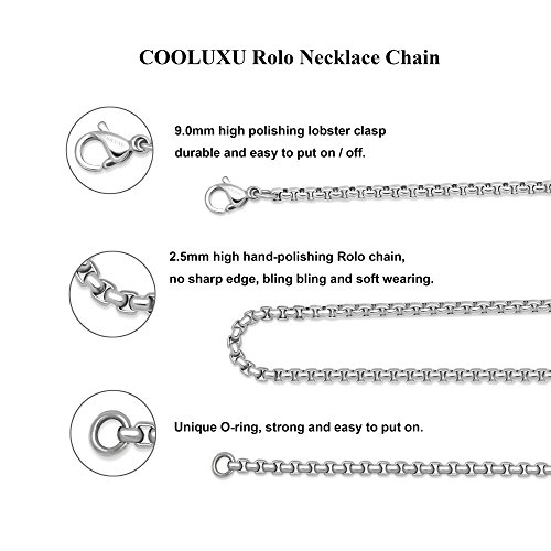 Date first listed on Amazon: September 10, 2017 Brand, Seller, or Collection Name:COOLUXU Metal:Stainless steel Material:NA Gem Type:NA Setting:NA Item Length:1.45 inches Chain:Rolo Clasp:lobster-claw-clasps