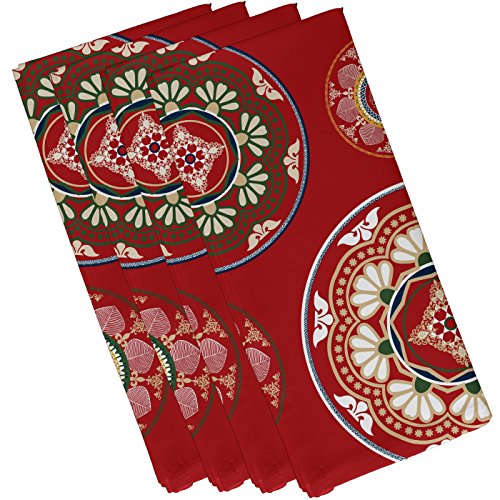 E by design Medallions, Geometric Print Napkin (Set of 4), 19 x 19", Red
