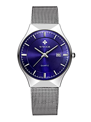 WWOOR 손목시계 맨즈 아날로그 3 침날짜 표시 캘린더 스테인레스 밴드 클래식 30M방수