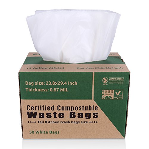 THIRTEEN GALLON SIZE: Each of our compost bags has a capacity of 13 gallons, Measures 23.8 x 29.4 inch Extra Thick 0.87 Mil pack of 50