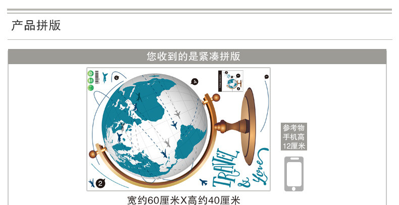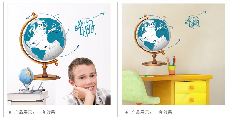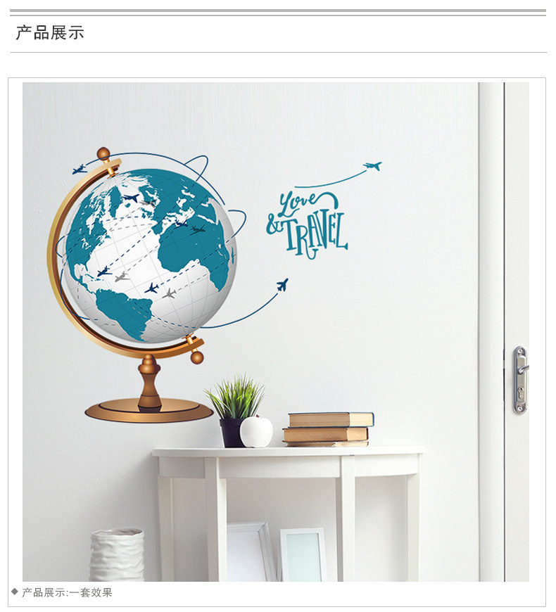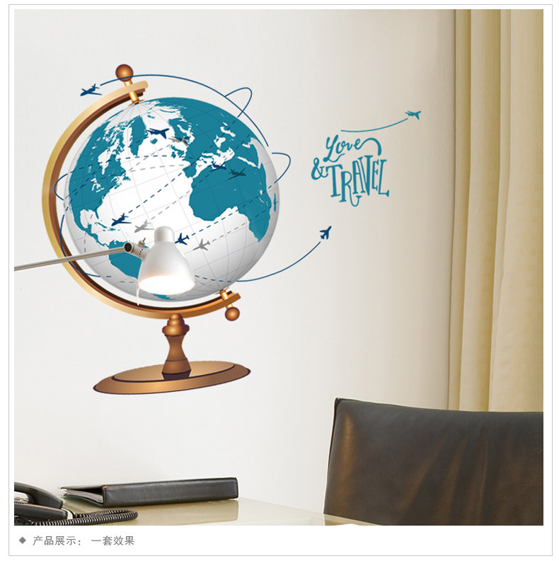 地球仪个性书房教师寝室宿舍墙贴世界地图房间装饰品墙纸壁纸自粘