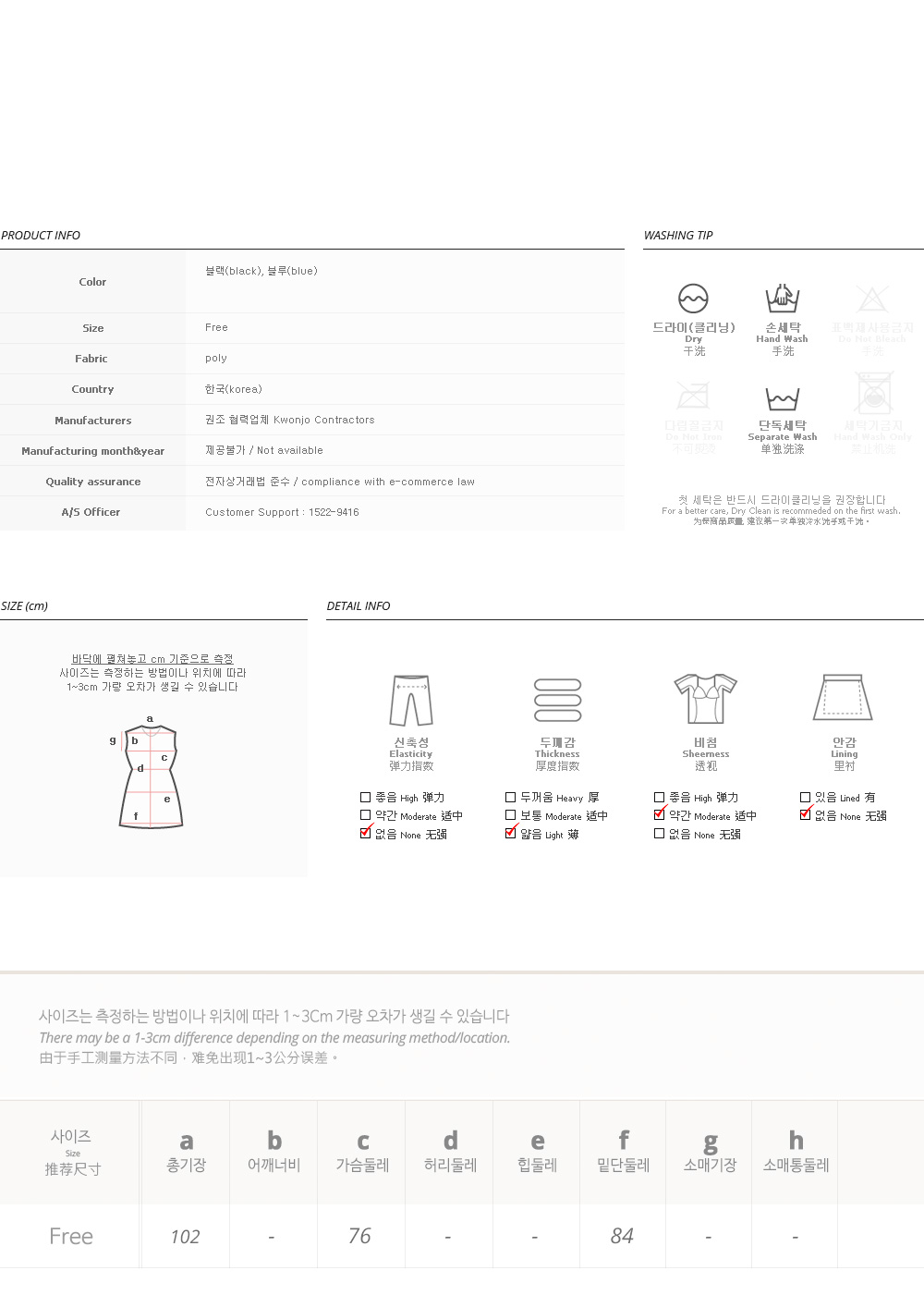 플로럴 드레스 입니다 화사한 색감과 다채로운 플라워 패턴이 여성스러우면서 여리여리한 실루엣이 매력적인 제품인데요, 시원하게 패인 브이네크라인에 끈조절이 가능한 어깨선으로 체형에 맞게 조절해서 입으실수 있구요. 티셔츠와 레이어드 하시거나 단품으로 연출하여 시원한 느낌으로 즐기시기 좋으실꺼에요 ^^ 휴양지룩으로 강추! 합니다. 힙선부터는 딱 붙는 타입이라 머메이드라인이나 실루엣이 드러나는 핏인데 허리선 아래로 귀여운 캉캉 디테일을 포인트를 주어 부담스럽지 않게 연출하실수 있답니다 ^^ 피팅 컬러와 사이즈는 블루, Free 입니다 ![]() ![]() ![]() ![]() ![]() ![]() |