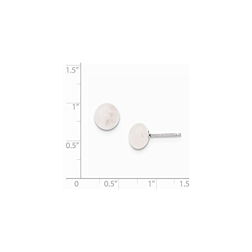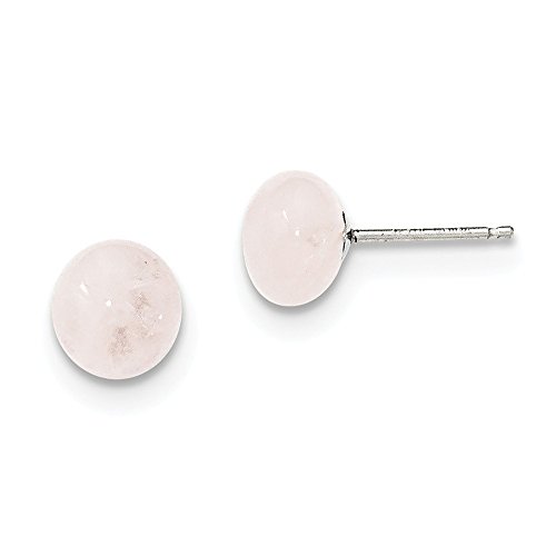Solid 925 Sterling Silver 8-8.5mm Button Rose Simulated Quartz Post Earrings