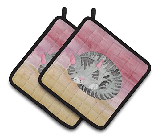 Caroline's Treasures BB7353PTHD Sleeping Grey Cat Watercolor Decorated Pot Holder, 7.5" H x 7.5" W, Multicolor